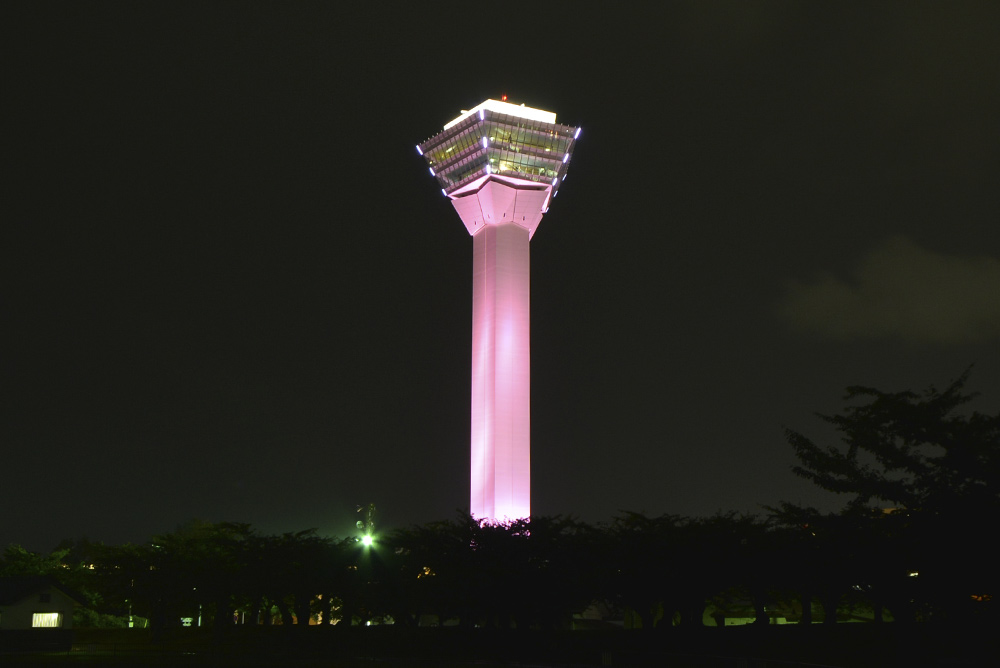 「ピンクリボン(乳がん撲滅)キャンペーン」にあわせ、塔体を18時〜21時にピンク色にライトアップいたします。
