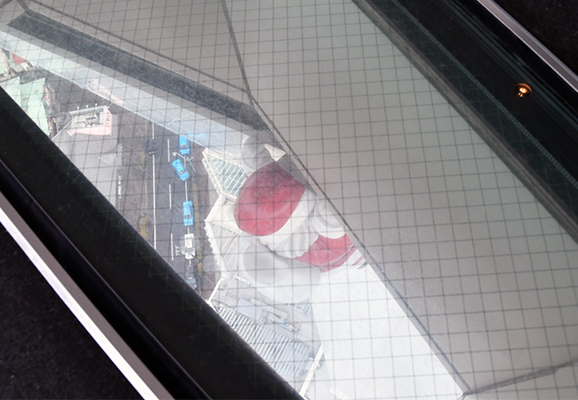 サンタクロースは、塔体の「ネック」と呼ばれる部分に設置されており、展望1階のシースルーフロアからもご覧いただけます。